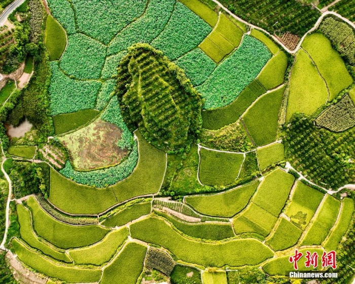 四川省南充市蓬安縣將高標(biāo)準(zhǔn)農(nóng)田建設(shè)和撂荒地治理同美麗鄉(xiāng)村建設(shè)、人居環(huán)境改善等工作緊密結(jié)合,助力鄉(xiāng)村振興。圖為色彩斑斕的稻田。 劉永紅 攝