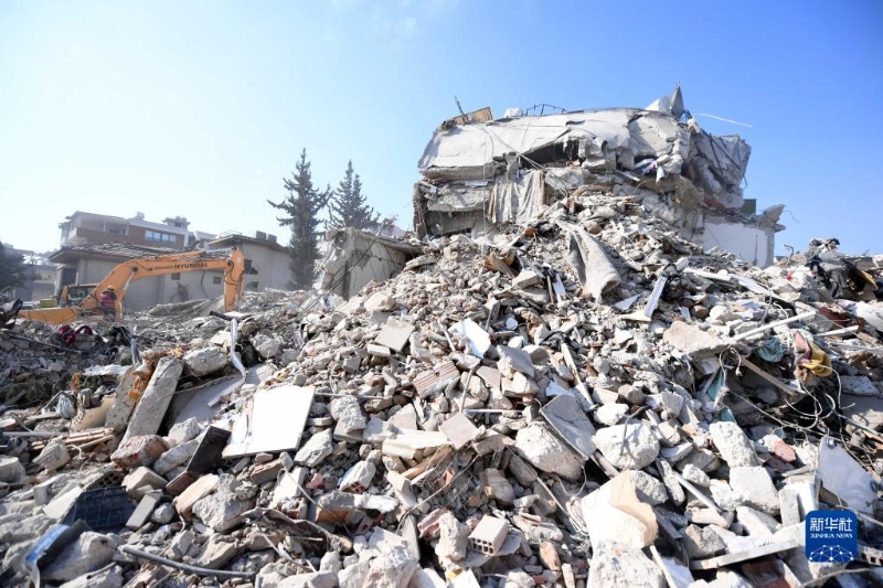 這是2月12日在土耳其哈塔伊省安塔基亞市拍攝的地震留下的廢墟。