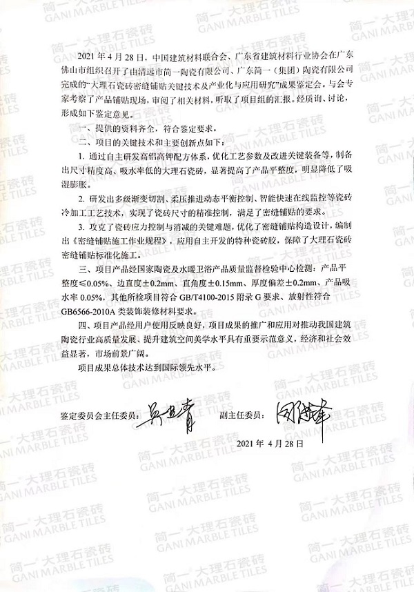 經(jīng)權(quán)威專家鑒定,簡一密縫鋪貼技術(shù)總體達(dá)國際領(lǐng)先水平