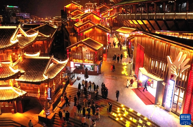 1月25日,湖北省宣恩縣興隆老街燈火輝煌(無人機(jī)照片)。新華社發(fā)(宋文 攝)