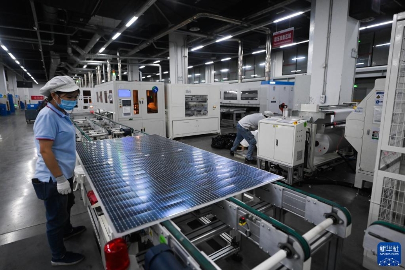 1月10日,在位于浙江嘉興秀洲光伏小鎮(zhèn)內(nèi)的一家科技有限公司,工人在查看剛生產(chǎn)出來的光伏設(shè)備組件。新華社記者 徐昱 攝