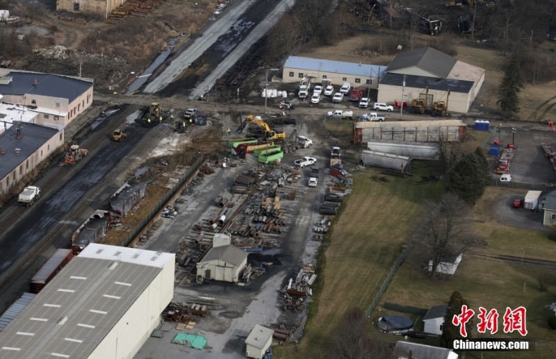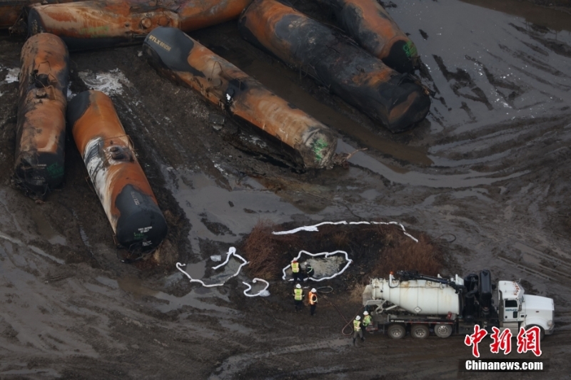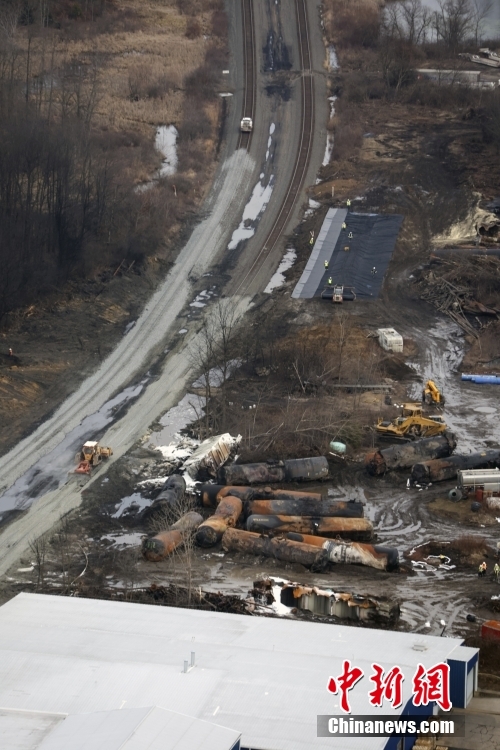 2月3日晚,一列運(yùn)載有毒化學(xué)品的列車在美國俄亥俄州東部脫軌,引發(fā)大火。當(dāng)?shù)貞?yīng)急部門6日對車載有毒氣體進(jìn)行“受控釋放”操作,導(dǎo)致方圓數(shù)公里內(nèi)居民因面臨致命氣體威脅而緊急疏散。澳大利亞新聞網(wǎng)13日報(bào)道,這一事件引發(fā)的有毒氣體擴(kuò)散問題已導(dǎo)致附近動物出現(xiàn)咳嗽、腹瀉、流淚、無食欲等中毒癥狀。圖為事故現(xiàn)場。