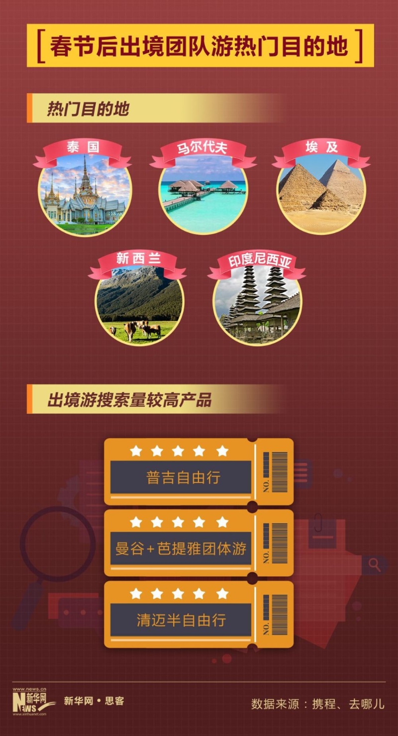 在這些出境游的首發(fā)團中,不少旅游團選擇將泰國等東南亞地區(qū)作為首發(fā)站,而游客對于東南亞地區(qū)也最為青睞。從攜程數(shù)據(jù)來看,憑借熱情好客和機票價格相對便宜,泰國穩(wěn)居出境跟團熱度第一;馬爾代夫、埃及、新西蘭和印度尼西亞也成為了熱門目的地。去哪兒平臺上出境游搜索量較高的產品是普吉自由行、曼谷+芭提雅團體游、清邁半自由行等。