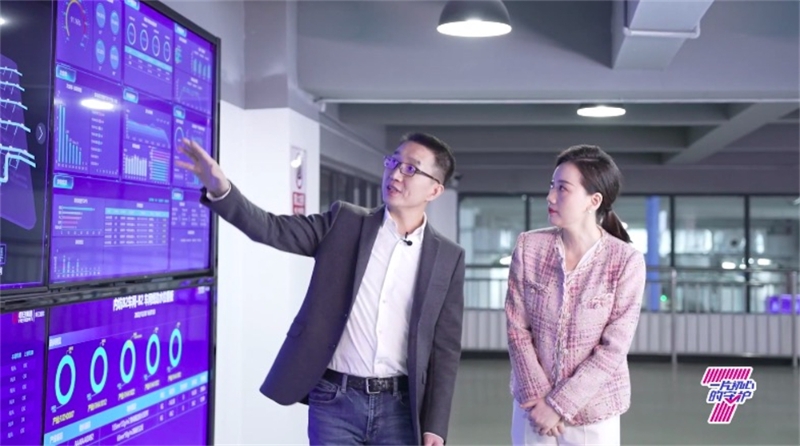 恒安集團總裁許清流帶領常婷參觀生產(chǎn)車間中控面板