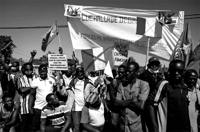 就地區(qū)伙伴而言,馬里和布基納法索相繼發(fā)生軍事政變,昔日盟友“去法國(guó)化”愈演愈烈。近年來(lái),由于新冠疫情、恐怖活動(dòng)等原因,西非地區(qū)軍事政變頻發(fā),馬里在2020年8月和2021年5月發(fā)生兩次軍事政變,布基納法索2022年發(fā)生兩次軍事政變。政變后的馬布兩國(guó)過(guò)渡政府為收攏人心、鞏固自身政權(quán),采取“去法國(guó)化”政策,而法國(guó)也對(duì)政變后過(guò)渡政府的合法性提出質(zhì)疑,馬法、布法雙邊關(guān)系不斷惡化。前有馬里宣布退出聯(lián)合反恐的薩赫勒五國(guó)集團(tuán),并驅(qū)離法國(guó)駐該國(guó)大使;后有布基納法索宣布終止允許法國(guó)在布領(lǐng)土駐軍的軍事協(xié)議,并要求駐扎在該國(guó)的法國(guó)軍隊(duì)在一個(gè)月內(nèi)撤離。