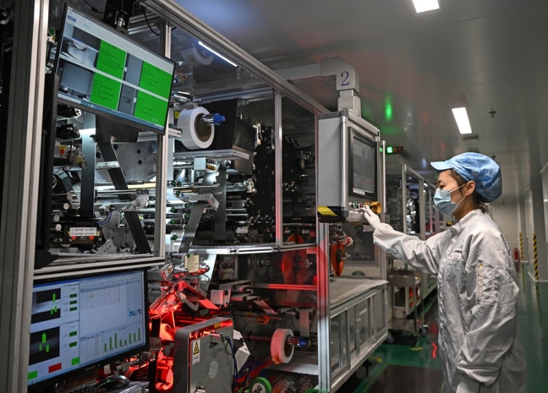 2月8日,在天津力神電池股份有限公司動(dòng)力電池生產(chǎn)車間,自動(dòng)化機(jī)械設(shè)備正在作業(yè)。新華社記者 趙子碩 攝