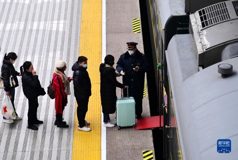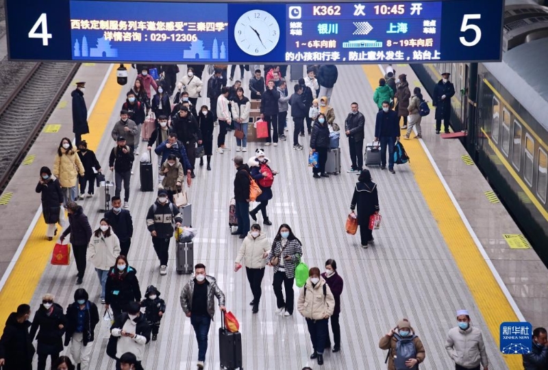 2月15日,旅客在西安站進(jìn)站乘車(chē)。