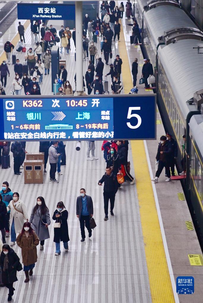 2月15日,乘坐K362次列車(chē)的旅客抵達(dá)西安站。