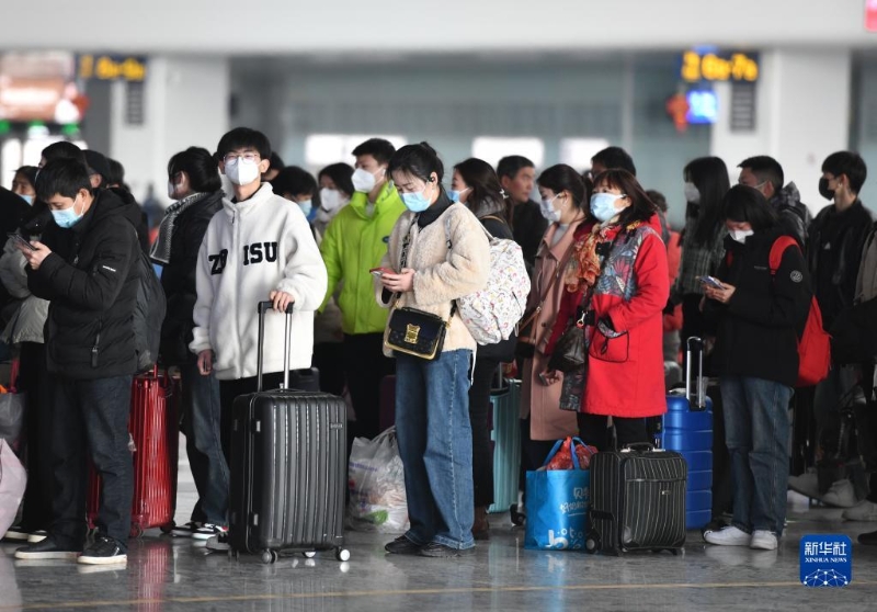 2月15日,旅客在安徽阜陽(yáng)西站進(jìn)站準(zhǔn)備乘車(chē)。