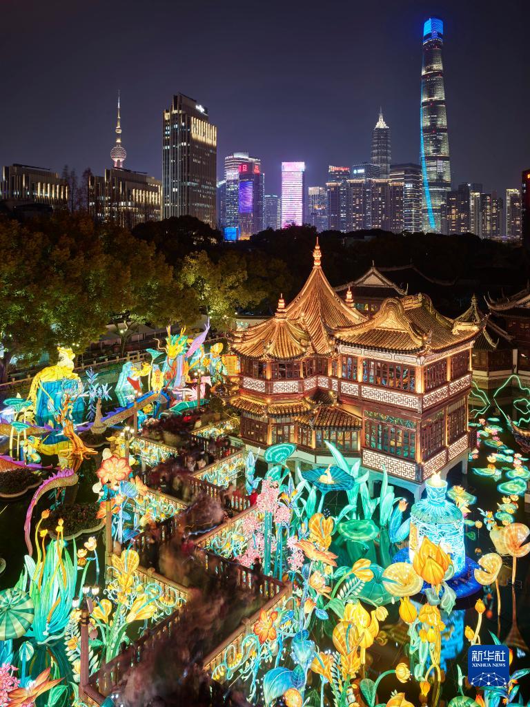 2月15日,市民和游客在上海豫園賞燈。