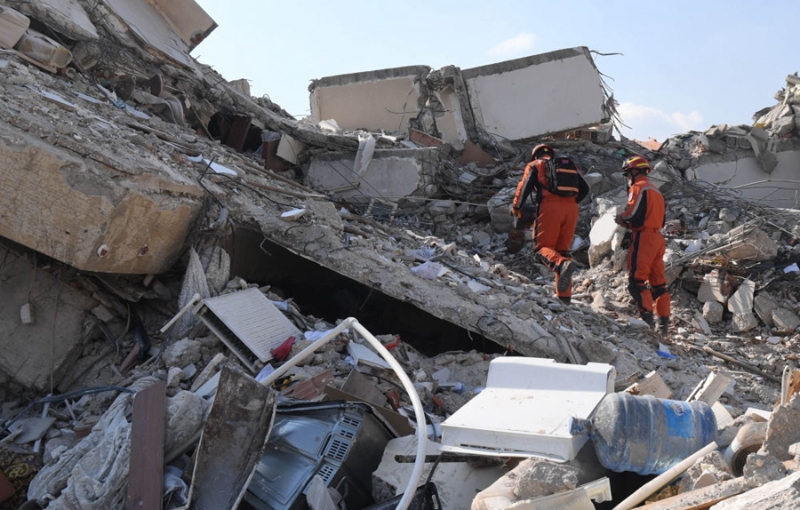 2月11日,中國救援隊隊員在土耳其哈塔伊省安塔基亞市一處地震廢墟開展救援工作。 新華社記者 沙達提 攝