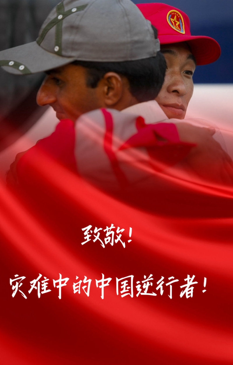 2010年1月19日,中國搜救隊員在太子港市受災(zāi)最嚴重的地區(qū)廢墟上搜尋生命跡象。新華社記者袁滿 攝