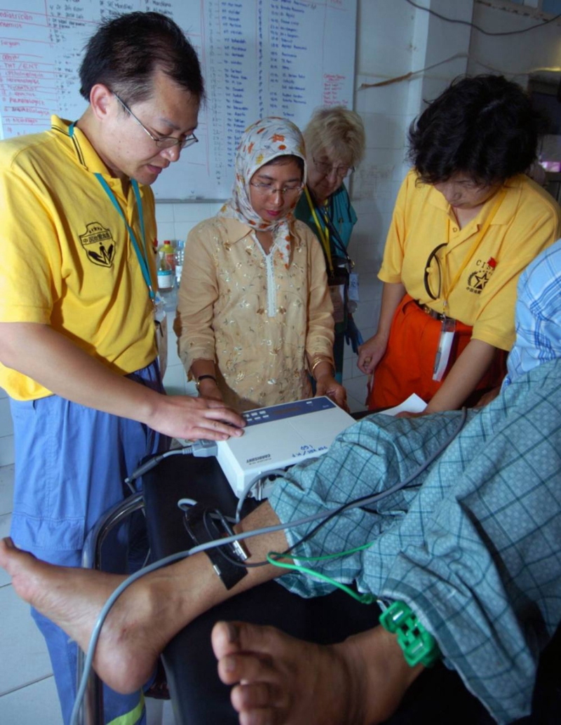 2005年1月22日,在印度尼西亞海嘯災(zāi)區(qū)班達亞齊總醫(yī)院,中國國際救援隊隊員為病人診治。 2004年12月26日,印度尼西亞蘇門答臘近海發(fā)生8.7級地震,并引發(fā)大規(guī)模海嘯,造成嚴重人員傷亡。新華社記者 王建華 攝