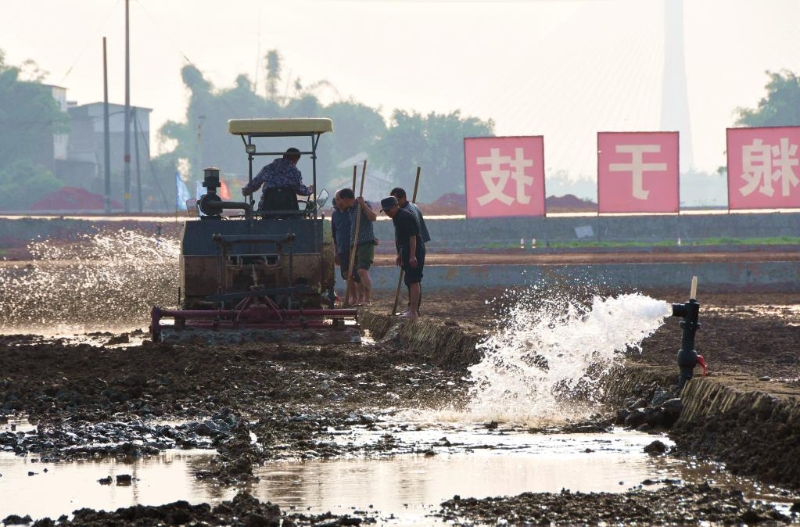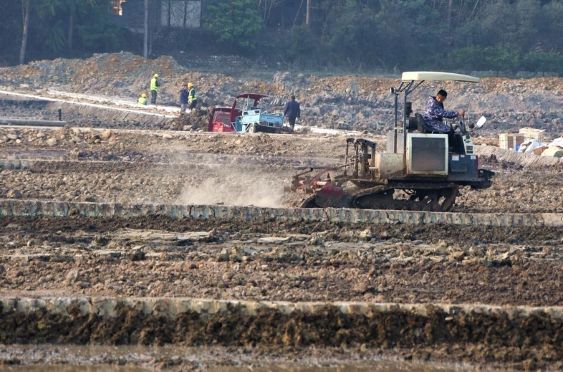 對四川省宜賓市江南鎮(zhèn)紅偉村村民郭小軍來說,今年的立春與往年不同。他沒有操心春耕準備的事,因為在自家門口的農(nóng)田里,一項“大工程”正熱火朝天地進行:一臺臺旋耕機平整田地,工人們泡田打漿、鋪設(shè)排水管……