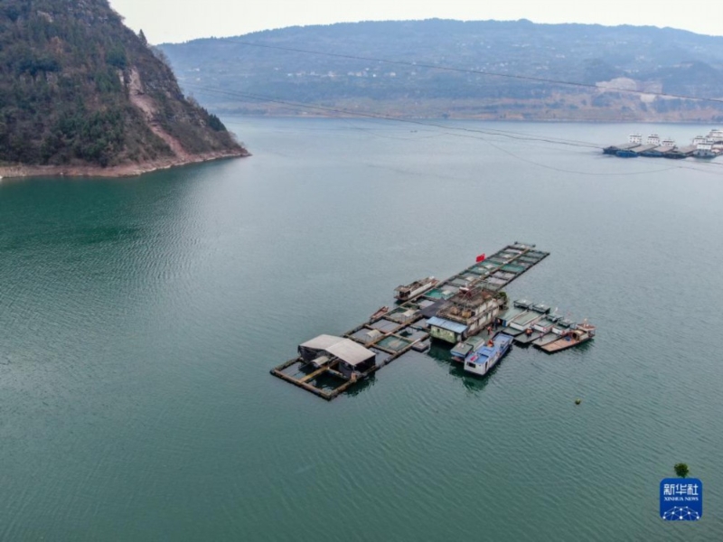 這是三峽庫(kù)區(qū)珍稀魚類馴養(yǎng)基地(2022年2月25日攝,無(wú)人機(jī)照片)。新華社記者 唐奕 攝