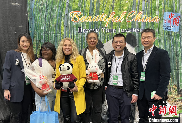 當天,來自拉斯維加斯的杰夫(Jeff)帶著女兒羅斯琳等家人一起參觀旅游和探險展。在中國展臺前,工作人員熱情地送給羅斯琳一個可愛的兔年吉祥物,小女孩愛不釋手地把毛絨兔抱在懷里。杰夫說,雖然還沒去過中國,但早就知道中國的長城等名勝古跡,希望有機會親自去看一看。