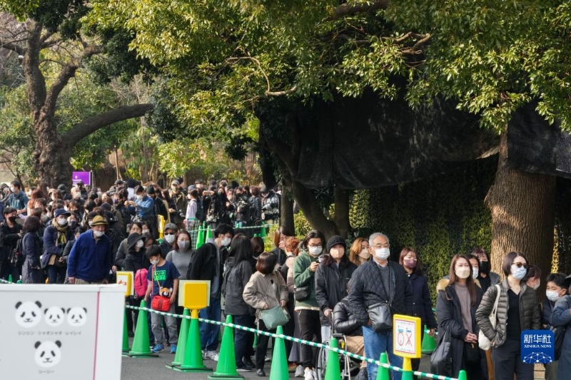2月19日,在日本東京上野動物園,游客排隊與大熊貓“香香”告別。新華社記者 張笑宇 攝