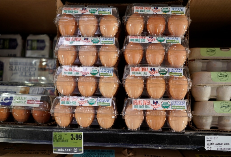 這是2022年4月5日在美國舊金山灣區(qū)米爾布雷一家超市拍攝的雞蛋。新華社發(fā)(李建國攝)