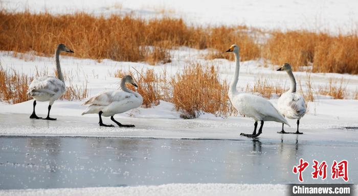 準(zhǔn)噶爾盆地西南緣的新疆瑪納斯縣,成群的白鷺、赤麻鴨棲息,野鳥眾多?,敿{斯國家濕地公園處于世界候鳥遷徙“3號線”,是候鳥飛躍阿爾泰山和天山的“能量補(bǔ)充站”。近年來,濕地工作人員為越冬天鵝食物不足、活動水域不廣等問題,采取人工投食、破冰造湖等措施,保證野外天鵝正常生存。目前,在瑪納斯?jié)竦卦蕉拇筇禊Z、白鷺、鸕鶿等候鳥數(shù)量不斷增加,其中大天鵝的數(shù)量已由2011年的30余只增加到現(xiàn)在的800余只。