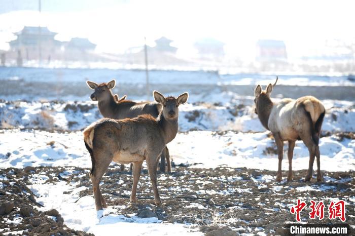 2月4日,新疆東天山巴里坤野生馬鹿在縣城郊區(qū)附田野中覓食。 達(dá)吾提·熱夏提 攝