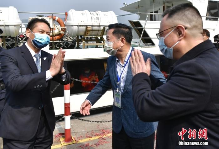 中新社福州2月19日電 (記者 閆旭)連江黃岐至馬祖白沙客運(yùn)航線19日恢復(fù)通航,馬祖縣長(zhǎng)王忠銘搭乘該航線抵達(dá)福州,開啟為期四天的福州參訪之旅。