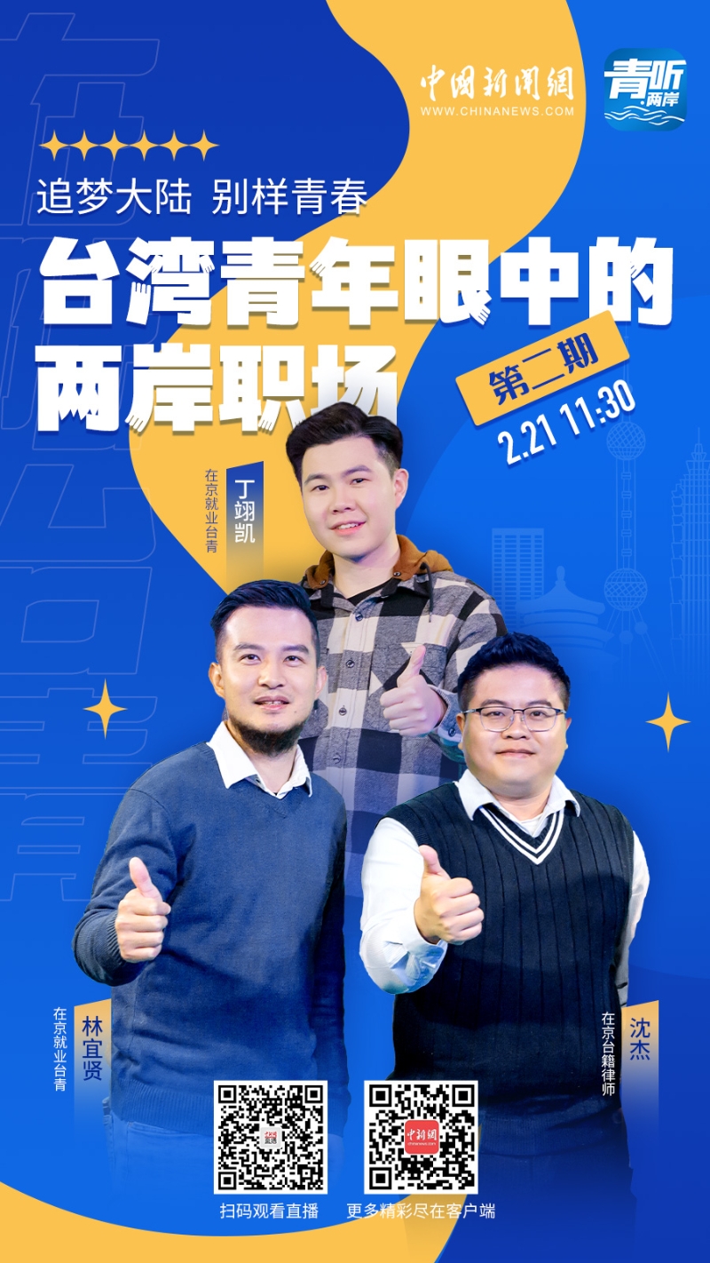 近日,北京市帥和律師事務(wù)所合伙人沈杰、北京金橋鷹石創(chuàng)投中心投資總監(jiān)林宜賢、上海凱鴻環(huán)保工程有限公司市場(chǎng)區(qū)域經(jīng)理丁翊凱,3位在大陸就業(yè)臺(tái)青做客中國(guó)新聞網(wǎng)《青聽??jī)砂丁窓谀?,分享自己的大陸就業(yè)經(jīng),向更多臺(tái)青發(fā)出了共同追夢(mèng)大陸的邀請(qǐng)。