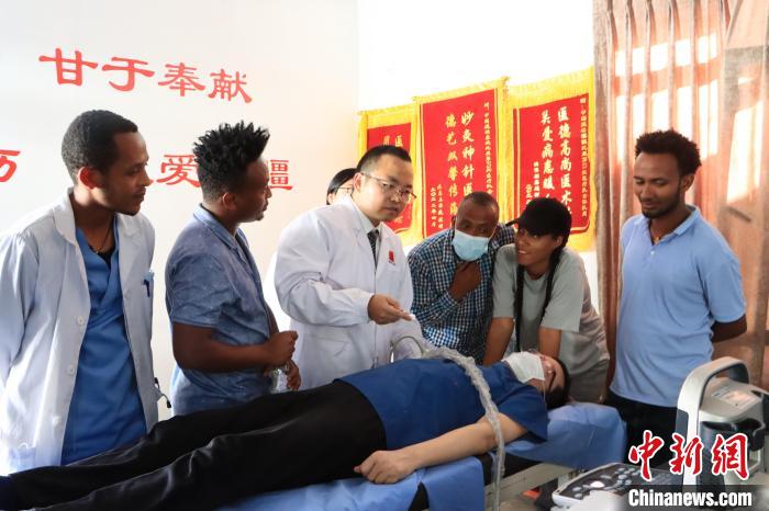 中國(guó)援埃塞俄比亞第23批醫(yī)療隊(duì)麻醉醫(yī)生趙勇輝為當(dāng)?shù)蒯t(yī)務(wù)人員進(jìn)行培訓(xùn)。(資料圖) 河南省衛(wèi)健委供圖