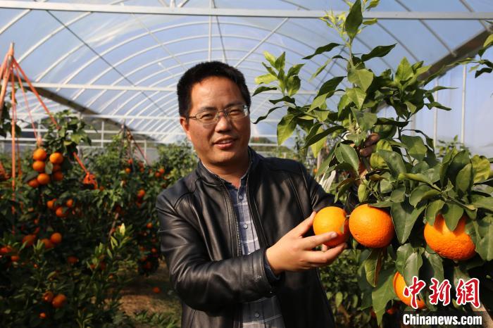 韓東道與“紅美人”柑橘?!∠笊娇h定塘鎮(zhèn)人民政府供圖