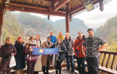 貴州省凱里市的郎德上寨被譽(yù)為“中國(guó)景觀村落”,圖為在華外國(guó)人到此游覽。中旅旅行供圖