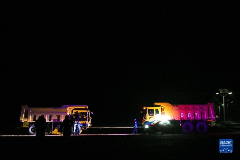 2月23日凌晨,救援車輛在事故露天煤礦作業(yè)(無人機(jī)照片)。
