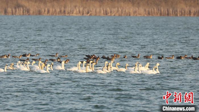 中新網(wǎng)衡水2月22日電 (崔志平 黃建)河北衡水湖國(guó)家級(jí)自然保護(hù)區(qū)資源保護(hù)局22日消息,在21日的日常監(jiān)測(cè)中,工作人員發(fā)現(xiàn)50只小天鵝在湖面上棲息。這是今春首批來到衡水湖的候鳥,隨著天氣轉(zhuǎn)暖,衡水湖春季鳥類遷徙拉開序幕。