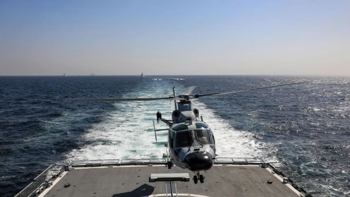 譚克非:2月9日至14日,應(yīng)巴基斯坦海軍邀請,中國海軍派出南寧艦赴巴基斯坦卡拉奇參加了“和平-23”多國海軍聯(lián)合演習(xí)。演習(xí)期間,中國海軍參加了海上補(bǔ)給、聯(lián)合反海盜、對海實(shí)彈射擊等海上科目演練及國際海事會議、專業(yè)研討交流、艦艇開放等港岸活動(dòng)。此次參演進(jìn)一步促進(jìn)了中國海軍與其他參演國海軍的海上交流協(xié)作,彰顯了共同維護(hù)海上安全的決心,提高了共同應(yīng)對海上安全威脅的能力。