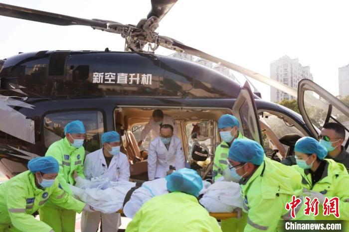 然而,因患者仍存在呼吸衰竭、氣胸、骨盆骨折等情況,考慮到醫(yī)院口腔頜面部修復(fù)技術(shù)受限,經(jīng)專家評(píng)估并與患者家屬溝通后,天臺(tái)縣人民醫(yī)院決定將其轉(zhuǎn)運(yùn)至浙大二院進(jìn)行進(jìn)一步治療。鑒于患者傷情嚴(yán)重、情況緊急,中國(guó)空中急救醫(yī)院聯(lián)盟派了直升機(jī)進(jìn)行免費(fèi)轉(zhuǎn)運(yùn)。