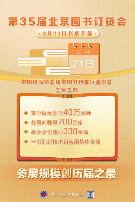 新華社北京2月24日電(記者史競男)由中國出版協(xié)會(huì)、中國書刊發(fā)行業(yè)協(xié)會(huì)主管主辦的第35屆北京圖書訂貨會(huì),24日在京開幕。