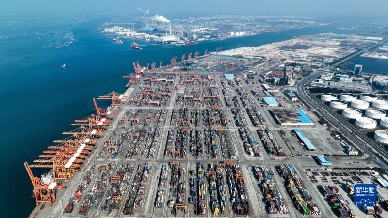 這是廣西欽州港集裝箱碼頭(2月25日攝,無人機照片)。