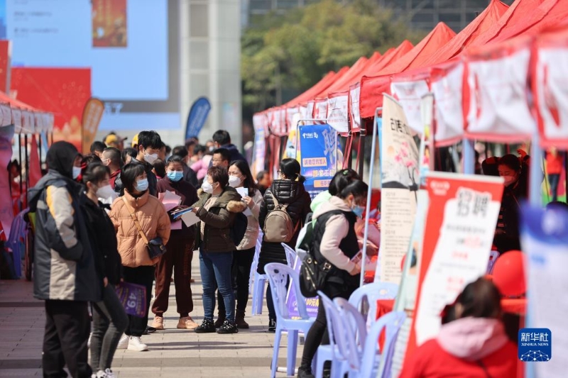 當(dāng)日,一場春季大型招聘會在福建廈門五一文化廣場舉行,現(xiàn)場百余家用人單位提供崗位需求,吸引求職者前來應(yīng)聘。