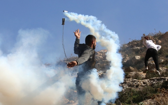 1月27日,在約旦河西岸城市納布盧斯東部村莊拜特代堅,巴勒斯坦抗議者與以色列士兵發(fā)生沖突。新華社發(fā)(尼達勒攝)