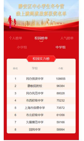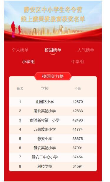 圖:靜安區(qū)中小學(xué)生冬令營(yíng)線上跳繩挑戰(zhàn)賽上榜中學(xué)