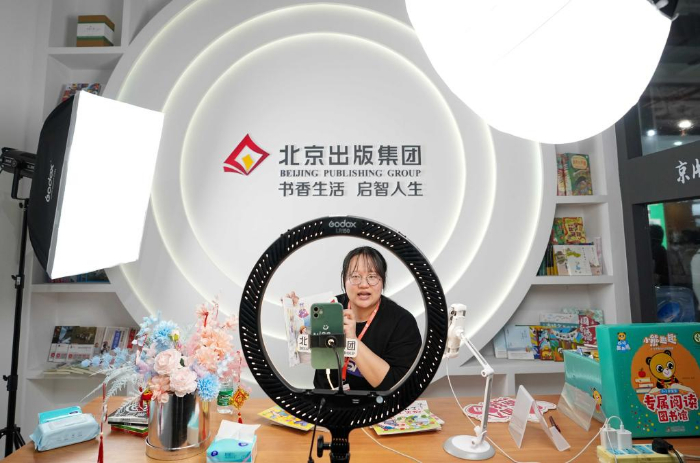除了書多人多,記者在訂貨會(huì)現(xiàn)場(chǎng)看到,直播間幾乎成為各大出版集團(tuán)的“標(biāo)配”。主播們大聲賣力“吆喝”,在線上掀起了一股閱讀風(fēng)潮?!坝嗀洉?huì)首日我們直播9個(gè)多小時(shí),這三天都在持續(xù)直播?!敝鞑ブ苤拚f,“通過直播的形式,線下展會(huì)的影響力得以放大。盡管很忙很累,但每個(gè)人都充滿干勁?!?/p>