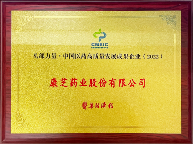 康芝藥業(yè)榮獲“頭部力量 中國醫(yī)藥高質(zhì)量發(fā)展成果企業(yè)”獎項