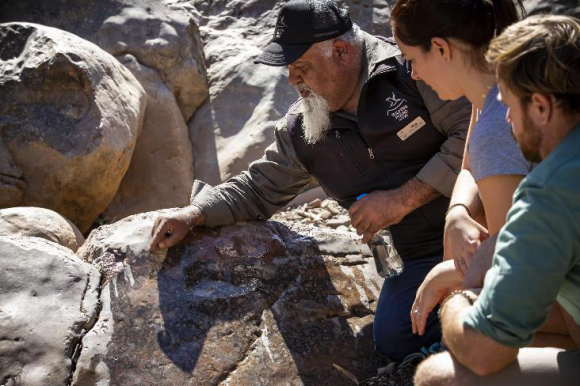 你可以從維憑拿龐度假村(Wilpena Pound Resort)搭乘觀光飛機(jī),以上帝視角俯瞰這片連綿的古老山脈,也可以加入當(dāng)?shù)氐囊幌盗性∶裎幕?,尤其對于已在弗林德斯山脈生活了數(shù)萬年的阿得亞曼塔哈族人而言,沒有什么能夠比他們更了解自己的家園。