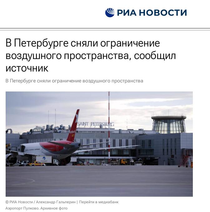 俄新社和塔斯社最新消息顯示,普爾科沃機(jī)場(chǎng)限制已取消,空域限制也已解除。