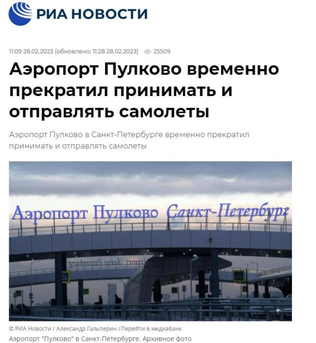 圣彼得堡市政府在“電報(bào)”頻道中寫道:“普爾科沃機(jī)場(chǎng)暫時(shí)停止飛機(jī)起飛和降落?!?/p>