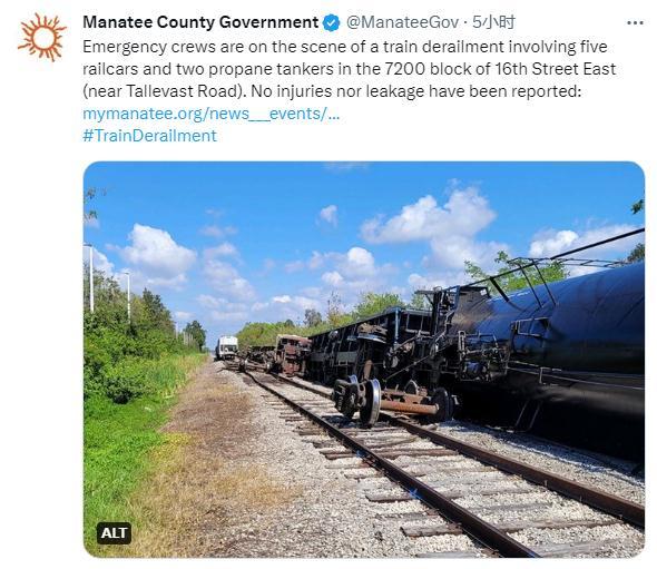 美媒FOX 13援引馬納特消防救援部門消息稱,其中一輛罐車載有約3萬加侖丙烷。另一輛盡管保持直立,但也裝有丙烷,在脫軌時偏離了軌道。