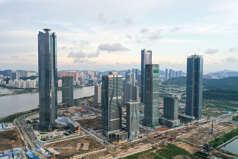 這是深圳前海深港現(xiàn)代服務(wù)業(yè)合作區(qū)(2021年9月8日攝,無人機(jī)全景照片)。新華社記者 毛思倩 攝
