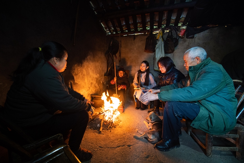 在湖南省常德市鼎城區(qū)草坪鎮(zhèn)楓林口村,全國人大代表杜美霜(右三)入戶與當(dāng)?shù)卮迕窠涣?2月16日攝)。新華社記者 陳思汗 攝