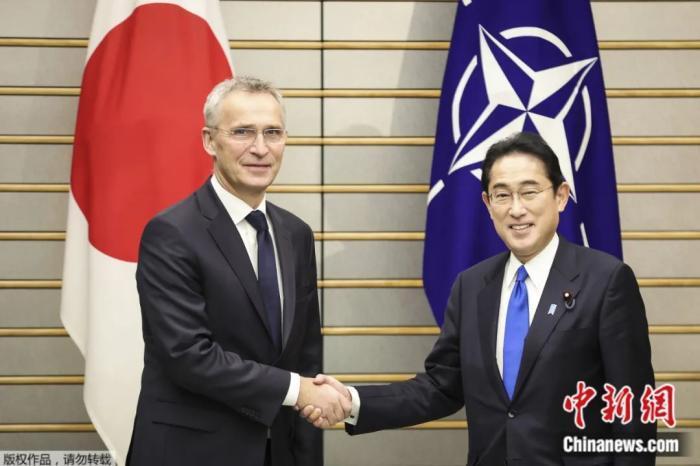 當(dāng)?shù)貢r(shí)間2023年1月31日,北約秘書(shū)長(zhǎng)斯托爾滕貝格在東京與日本首相岸田文雄握手。