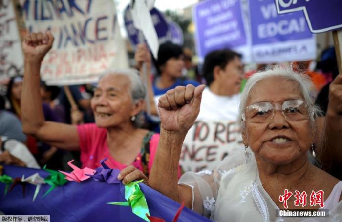 資料圖:菲律賓馬尼拉,二戰(zhàn)“慰安婦”受害者及民眾示威抗議,要求日本政府道歉賠償。