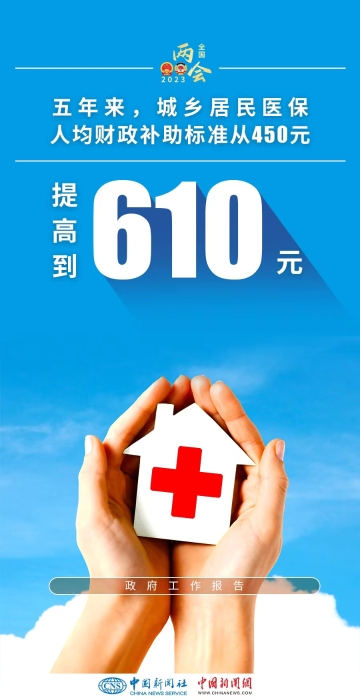——提升醫(yī)療衛(wèi)生服務(wù)能力。深入推進(jìn)健康中國(guó)行動(dòng),深化醫(yī)藥衛(wèi)生體制改革,把基本醫(yī)療衛(wèi)生制度作為公共產(chǎn)品向全民提供,進(jìn)一步緩解群眾看病難、看病貴問題。持續(xù)提高基本醫(yī)保和大病保險(xiǎn)水平,城鄉(xiāng)居民醫(yī)保人均財(cái)政補(bǔ)助標(biāo)準(zhǔn)從450元(人民幣,下同)提高到610元。將更多群眾急需藥品納入醫(yī)保報(bào)銷范圍。住院和門診費(fèi)用實(shí)現(xiàn)跨省直接結(jié)算,惠及5700多萬人次。推行藥品和醫(yī)用耗材集中帶量采購(gòu),降低費(fèi)用負(fù)擔(dān)超過4000億元。設(shè)置13個(gè)國(guó)家醫(yī)學(xué)中心,布局建設(shè)76個(gè)國(guó)家區(qū)域醫(yī)療中心。全面推開公立醫(yī)院綜合改革,持續(xù)提升縣域醫(yī)療衛(wèi)生服務(wù)能力,完善分級(jí)診療體系。促進(jìn)中醫(yī)藥傳承創(chuàng)新發(fā)展?;竟残l(wèi)生服務(wù)經(jīng)費(fèi)人均財(cái)政補(bǔ)助標(biāo)準(zhǔn)從50元提高到84元。改革完善疾病預(yù)防控制體系,組建國(guó)家疾病預(yù)防控制局,健全重大疫情防控救治和應(yīng)急物資保障體系,努力保障人民健康。