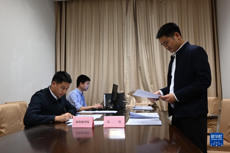 3月5日,國務(wù)院辦公廳工作專班工作人員在認(rèn)真工作,梳理匯總代表委員意見建議。新華社記者 姚均芳 攝